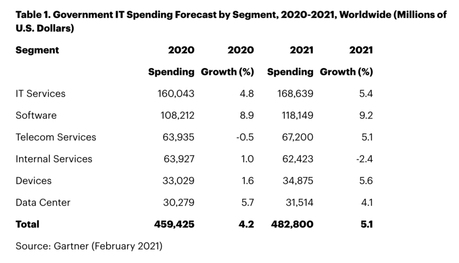 Alokasi belanja TI pemerintah untuk perangkat keras naik dari 1,6% menjadi 5,6% karena lembaga-lembaga pemerintah pun menerapkan pola kerja jarak jauh dan demi tetap bisa melayani publik selama pandemi.