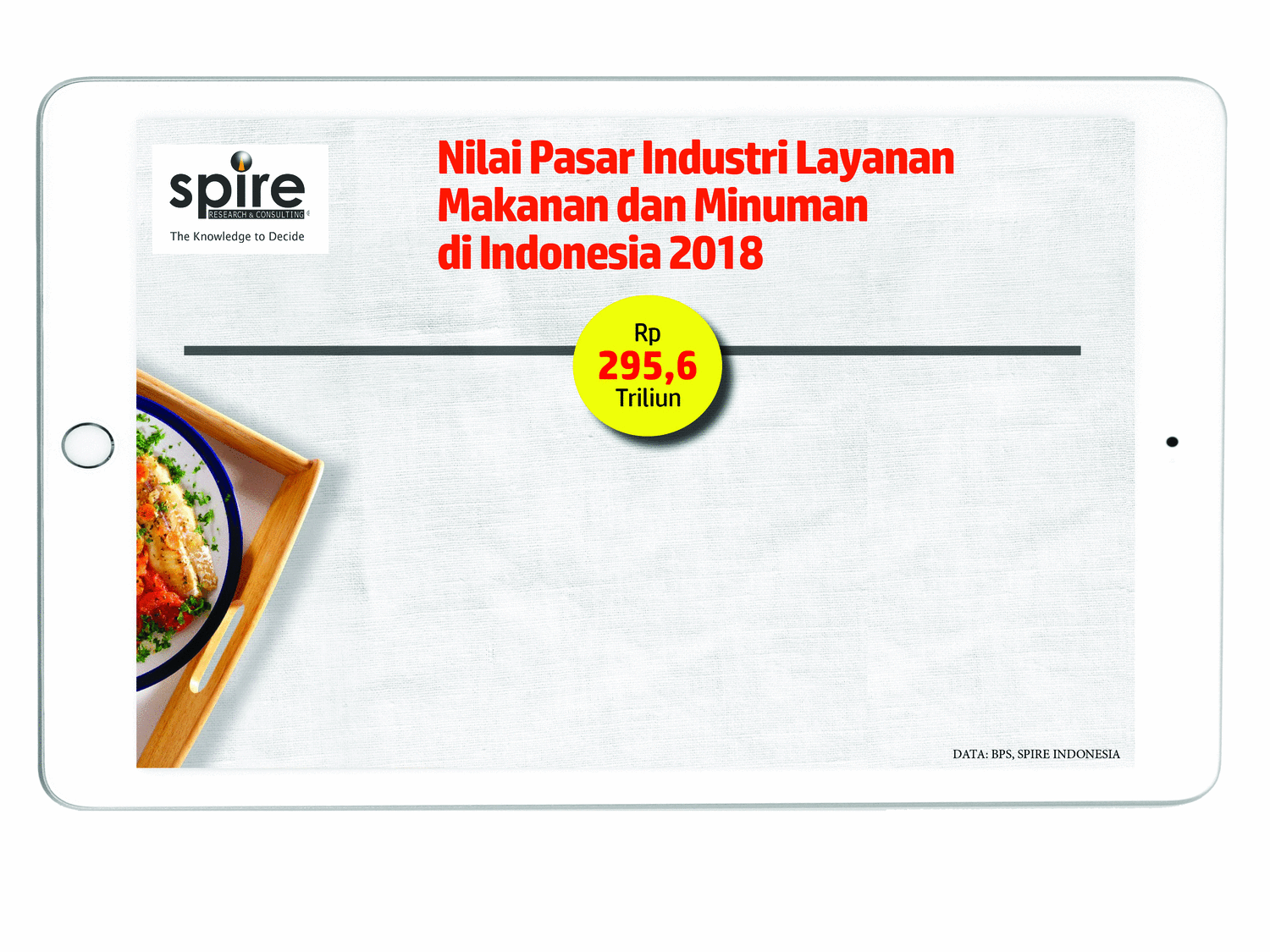 Spire Research and Consulting menyebutkan bahwa industri layanan makanan dan minuman sepanjang 2017 mencapai Rp295,6 triliun. Nilai pasar restoran (Full Service Restaurant) menyumbangkan porsi terbesar, yakni hingga 85,64%.
