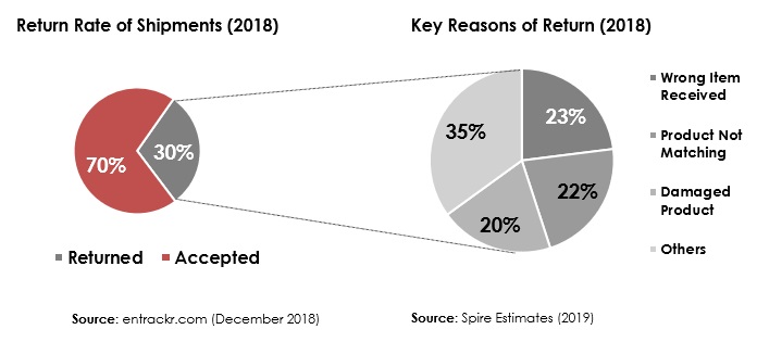 Meskipun industri logistik e-commerce sedang tumbuh dan kebijakan sedang diterapkan untuk lebih meningkatkan pertumbuhannya, ada tantangan, seperti preferensi Cash on Delivery (COD) sebagai cara pembayaran dan tingkat pengembalian yang tinggi oleh pelanggan akhir.