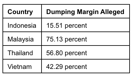 “Sayangnya, impor yang diperdagangkan secara tidak adil dari Indonesia, Malaysia, Thailand, dan Vietnam telah melonjak di pasar Amerika, menggantikan impor dari China dan India,” kata Paul Rosenthal, penasihat pemohon dari Kelley Drye & Warren LLP.